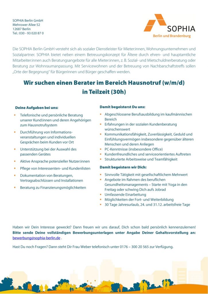 Berater im Bereich Hausnotruf (w/m/d) in Teilzeit (30h)